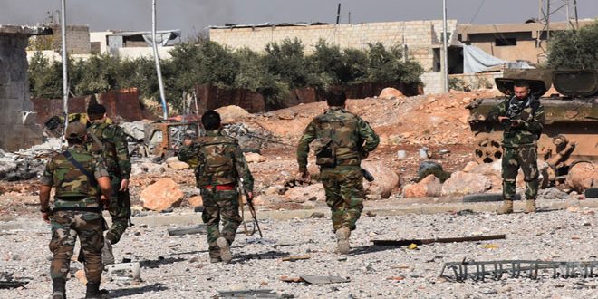 وذكر مصدر عسكري في تصريح لـ سانا أن وحدات من الجيش خاضت خلال الساعات الماضية اشتباكات عنيفة مع مجموعات إرهابية من تنظيم “داعش” تسللت إلى محيط نقاط عسكرية في منطقة تل مراغة شرق محور إثريا-خناصر.