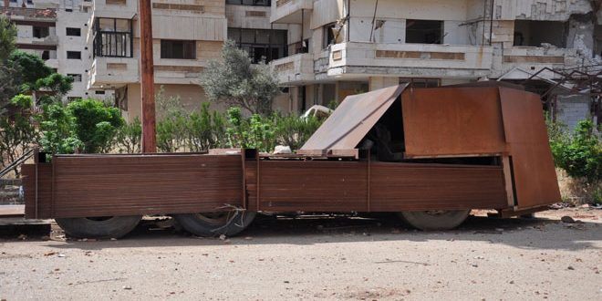 عثر عناصر الهندسة في الجيش العربي السوري اليوم على شاحنة مفخخة من مخلفات التنظيمات الإرهابية التكفيرية في حي الوعر على الأطراف الغربية لمدينة حمص خلال عمليات التمشيط المتواصلة للحي بعد إخلائه من السلاح والمسلحين بهدف توفير حماية المواطنين العائدين لمنازلهم وترسيخ حالة الأمن والاستقرار فيه.