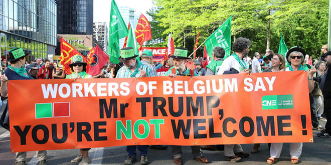 وكان أكثر من عشرة آلاف شخص تظاهروا أمس في بروكسل احتجاجا على زيارة ترامب كما شهدت العديد من العواصم الأوروبية في الفترة الماضية مظاهرات شارك بها عشرات الآلاف ضد سياسة الرئيس الأمريكي وخاصة ما يتعلق منها بالهجرة واللاجئين.