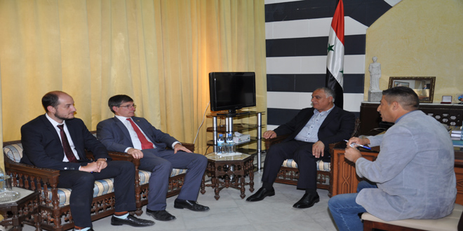 بحث محافظ حمص طلال البرازي اليوم مع اكيليس زلوار القائم بالأعمال في السفارة البرازيلية بدمشق سبل مساهمة الفعاليات الاقتصادية والهندسية البرازيلية في مرحلة إعادة الإعمار.