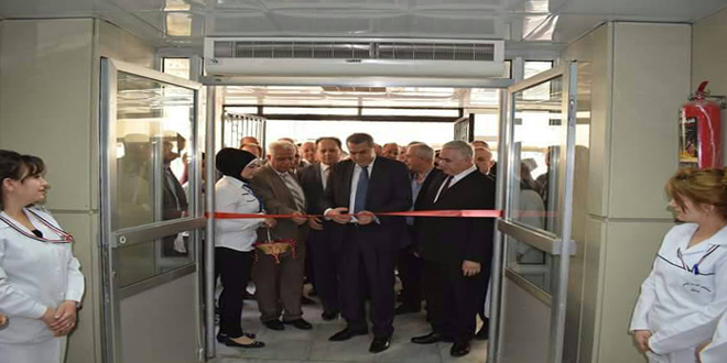 افتتحت اليوم في مشفى المواساة الجامعي بدمشق أقسام الإسعاف والأمراض الانتانية والأمراض النفسية بعد إعادة تأهيلها.