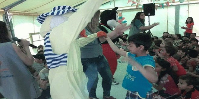 اكثر من 150 يافعا و طفلا شاركوا في فعاليات اليوم المفتوح الذي أقامه مشروع “شموع سورية” في حي الأرمن بمدينة حمص تحت إشراف 15 شابا وشابة من منشطي المشروع وتضمنت الفعالية التي انطلقت مؤخرا تحت عنوان “خيمة سلام” أنشطة متنوعة بينها مسرح للدمى ومسابقات وفقرات غنائية وراقصة بالإضافة الى توزيع مجموعة من الهدايا على الأطفال المشاركين.