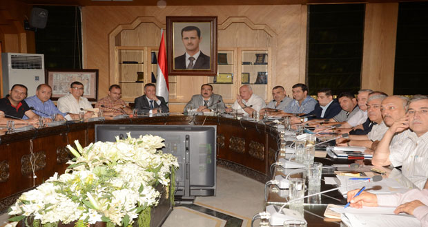 بحث محافظ حلب محمد وحيد عقاد خلال اجتماع موسع ضم مدير المدن والمناطق الصناعية بوزارة الإدارة المحلية واعضاء مجلس ادارة المدينة الصناعية في الشيخ نجار عمليات تاهيل وصيانة البنى التحتية فيها لإصلاح ما دمرته يد الإرهاب وتوفير احتياجات الصناعيين والمستثمرين فيها .