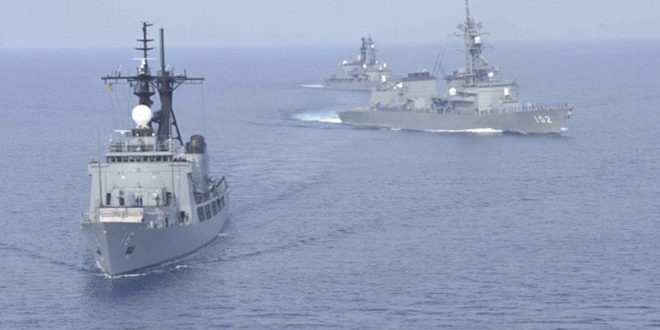 ونقلت رويترز عن الجيش الياباني قوله في بيان إن “قوات الدفاع البحري اليابانية أرسلت سفينتين إحداهما الحاملة هيوجا وهي واحدة من أربع حاملات مروحيات تملكها طوكيو للانضمام إلى حاملتي الطائرات الأمريكيتين رونالد ريغان وكارل فينسون والقطع البحرية المرافقة لهما”.