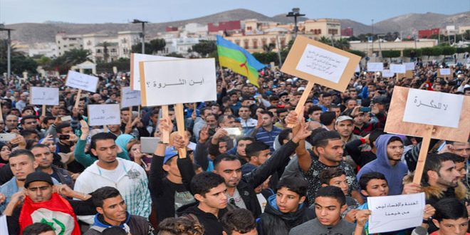 تواصلت الاحتجاجات الشعبية في مدينة الحسيمة شمال المغرب لليوم الثامن على التوالي للمطالبة بالإفراج عن ناصر زفزافي قائد حركة الاحتجاج الشعبي في تلك المنطقة ضد سياسات النظام المغربي الاقتصادية والاجتماعية.