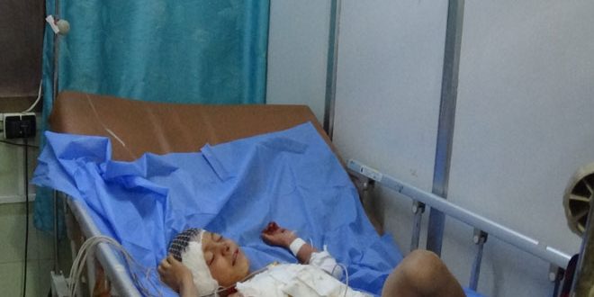 وأفادت مراسلة سانا فى درعا بأن المجموعات المسلحة استهدفت ظهر اليوم بقذائف صاروخية حى السبيل السكنى المكتظ بالسكان ما أسفر عن إصابة طفل في السابعة من عمره بجروح خطرة ووقوع أضرار مادية بالمنازل والبنى التحتية.