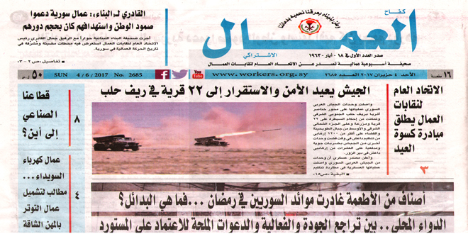 وفي العدد تحقيقات اقتصادية تناولت قضايا عدة من استثمار الطاقة وترشيدها وأصناف من الأطعمة غادرت موائد السوريين في رمضان وانتشار جرائم النصب الالكتروني بينما تطرق المرصد العمالي لشركات القطاع العام الصناعي الخاسرة وواقع الدواء المحلي.