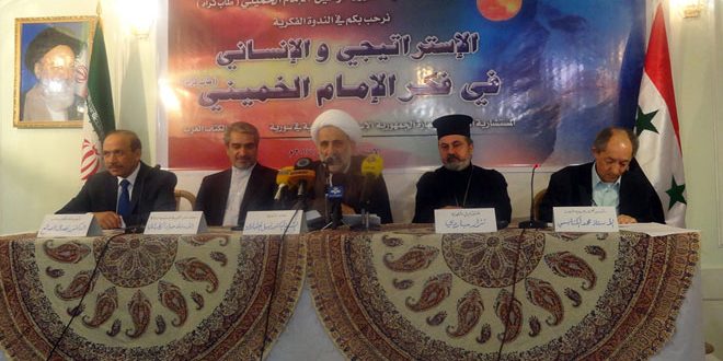 أقامت المستشارية الثقافية الإيرانية بالتعاون مع اتحاد الكتاب العرب ندوة فكرية بعنوان “الاستراتيجي والإنساني في فكر الإمام الخميني” بمناسبة الذكرى الـ 28 لرحيل الإمام الخميني مؤسس الجمهورية الاسلامية الإيرانية.