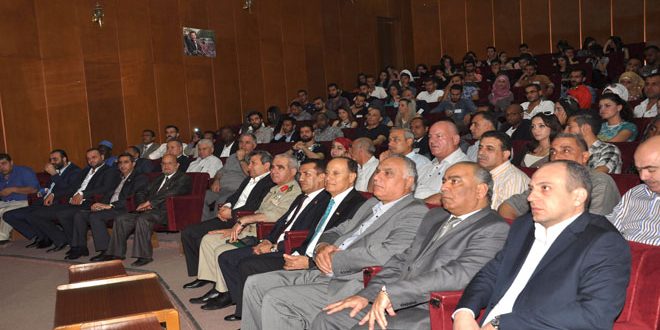 من ناحيته أكد أمين شعبة الطلبة العرب بجامعة دمشق الدكتور معتز القرشي أن سورية تصدت بكل جدارة لمشروع تفكيك الأمة على اعتبار أنها قلب الأمة موضحا انه بعد اكثر من ست سنوات من الحرب العدوانية على سورية نقف في جامعة البعث اليوم لنؤءكد التمسك بالثوابت والعزم على المضي قدما في سبيل العزة والكرامة.