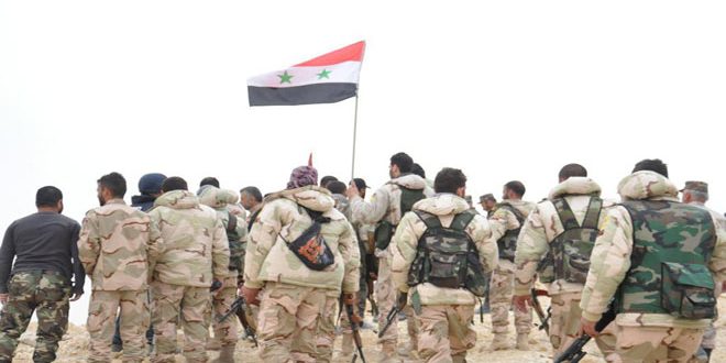 ألحقت وحدات من الجيش العربي السوري خسائر كبيرة بإرهابيي “داعش” بريف السويداء الشمالي الشرقي فيما استعادت وحدات أخرى من الجيش السيطرة على منتجع زنوبيا وتل الفري بريف تدمر محققة تقدماً جديداً خلال عمليتها المتواصلة على مقرات وتجمعات تنظيم داعش الإرهابي في ريف حمص الشرقي، في وقت نفذ فيه الطيران الحربي السوري غارات ليلية على تجمعات وتحركات لتنظيم “داعش” أسفرت عن إيقاع قتلى ومصابين في صفوف إرهابيي التنظيم.