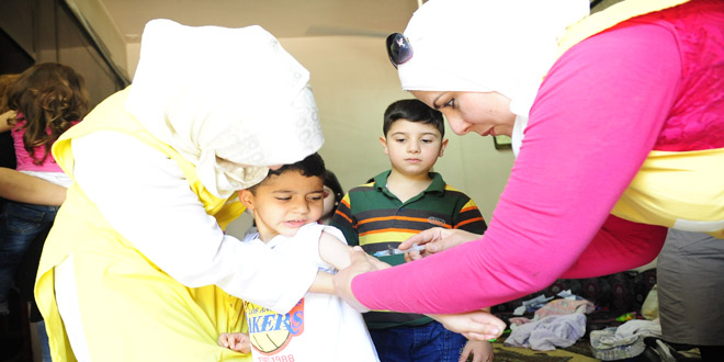 أطلقت مديرية الصحة بدير الزور اليوم الحملة الوطنية للقاح ضد مرض الحصبة التي تستهدف أكثر من 5800 طفل من عمر 7 أشهر إلى ما دون الخمس سنوات بغض النظر عن الجرعات السابقة.