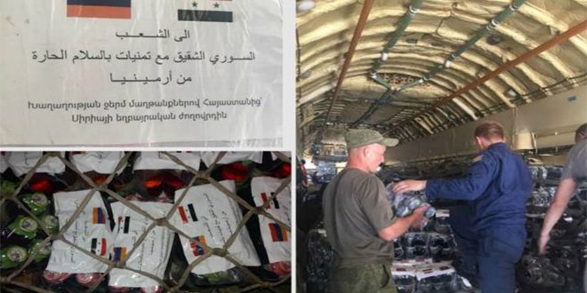 وكان وزير الدفاع الأرميني فيغين ساركسيان أعلن في نهاية ايار الماضي أن بلاده ستواصل تقديمها المساعدات للشعب السوري قائلا.. “أرمينيا بكل ود تقدم المساعدات للشعب السوري ونشكر الزملاء الروس على توفيرهم إمكانية شحن هذه المساعدات بطائرات القوات المسلحة الروسية وسوف نستمر بتنفيذ هذا البرنامج”.