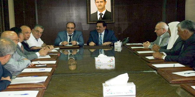 بحث وزيرا المالية الدكتور مأمون حمدان والاقتصاد والتجارة الخارجية الدكتور سامر الخليل مع رئيسي وأعضاء غرفتي التجارة والصناعة في محافظة حماة واقع العمل في قطاعاتهم والمشاكل والصعاب التي تعترضهم وسبل تذليلها.