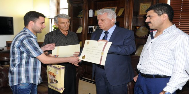 كرمت جامعة دمشق اليوم اثنين من ذوي طلابها الذين ارتقوا في سبيل الوطن ومنحتهم شهادات تخرج فخرية ومكافآت مالية.