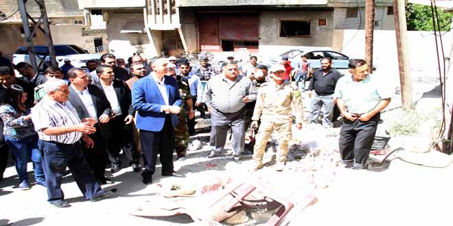 اطلع محافظ ريف دمشق المهندس علاء ابراهيم على واقع الخدمات والبنى التحتية في قريتي افرة وهريرة بعد إعادة الأمن والاستقرار اليهما وعودة الأهالي إلى منازلهم التي هجروا منها بفعل ممارسات المجموعات الإرهابية.
