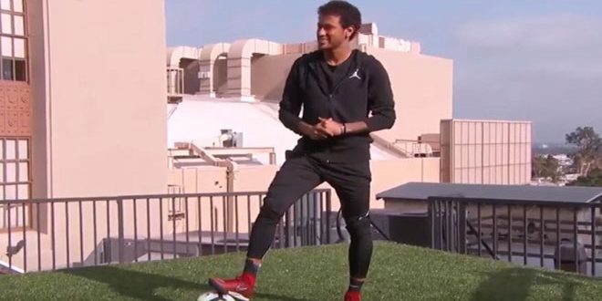 ظهر نيمار نجم برشلونة ومنتخب البرازيل ضمن برنامج “جيمي كميل” في تحد جديد على سطح أعلى مبنى في مدينة هوليوود الأمريكية.