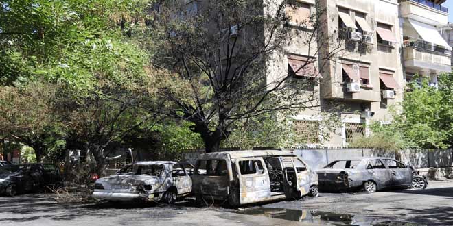 وذكر قائد فوج إطفاء دمشق العميد عبد الهادي ضاهر في تصريح لمندوبة سانا أن “حريقا لم تؤكد أسبابه بعد أتى على ثلاث سيارات بالكامل من أنواع مرسيدس وفان وشانا” وتم إخماده بعد حصره بالسيارات دون أن يمتد إلى الجوار.