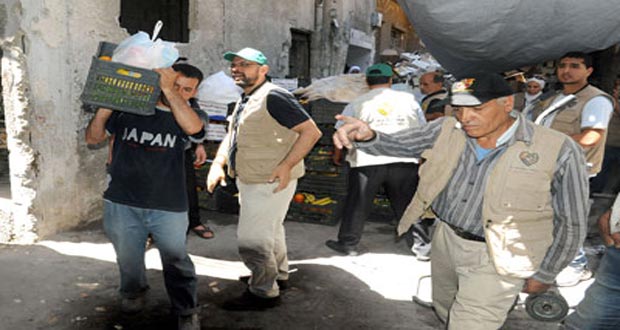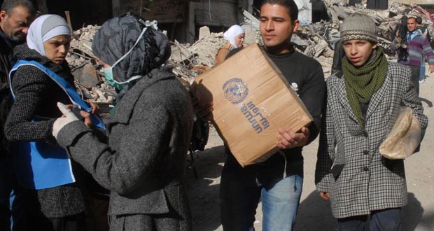 بدعم من الحكومة السورية وبإشراف اللجنة العليا للإغاثة واصلت الهيئة العامة للاجئين الفلسطينيين العرب ووكالة غوث وتشغيل اللاجئين الفلسطينيين الأونروا توزيع المساعدات الإنسانية على أهالي مخيم اليرموك المحاصرين من قبل التنظيمات الإرهابية المسلحة.