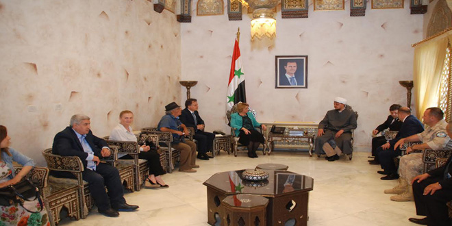 بدوره أشار صاديقوف إلى أنه يحمل رسالة “من قبل مفتي عموم روسيا للسوريين بأن جميع مسلمي روسيا يدعون في صلواتهم أن تعود العافية لسورية في مواجهة الإرهاب” آملا أن تستمر حالات التعاون بين البرلمانين الروسي والسوري والتنسيق بينهما من أجل حل المسائل التي تعترض توزيع المساعدات .