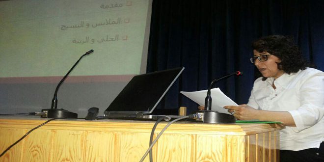 وألقت الضوء على تطور الملابس وأنواع النسيج الموجودة مشيرة إلى أن الملابس تعتبر من الارث اللامادي الا أن المكتشفات الأثرية هي التي تعطينا فكرة عن الملابس ونوعيتها لافتة الى التنوع الثقافي المستمر والإرث الثقافي السوري التراكمي الذي يمتد لآلاف السنين.