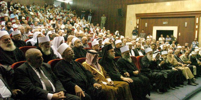 من جهته أكد شيخ عقل طائفة المسلمين الموحدين يوسف جربوع أن مشيخة العقل ورجال الدين في محافظة السويداء “كانوا دوما وسيبقون إلى جانب الوطن وضد أي عمل يمس مؤسسات الدولة وكرامة المواطنين أو أي من المظاهر والتصرفات السلبية الدخيلة على المجتمع” داعيا إلى “المحبة والتآلف والحفاظ على الوحدة واللحمة الوطنية وذلك انطلاقا من الواجب الديني والاجتماعي”.