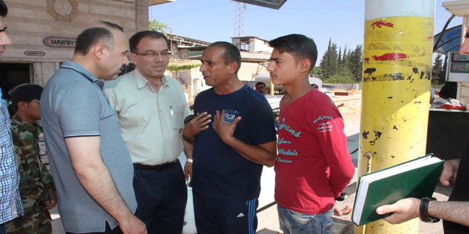 تفقد محافظ حماة الدكتور محمد الحزوري عددا من محطات الوقود للاطلاع على سير العمل فيها والتأكد من مدى جاهزيتها والتزامها بتعليمات وقرارات لجنة المحروقات من حيث التقيد بالدور والأسعار والكميات المحددة لتزويد المركبات بالوقود وذلك مع اقتراب حلول عيد الفطر المبارك.