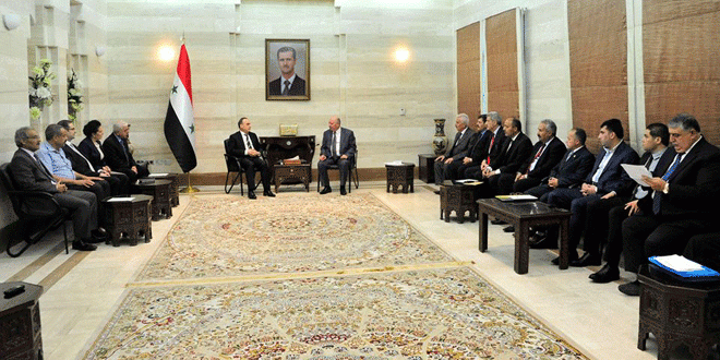 بحث رئيس مجلس الوزراء المهندس عماد خميس اليوم مع أعضاء مجلس الشعب عن ريف محافظة حلب الواقع التنموي والخدمي والاقتصادي في ريف المحافظة.