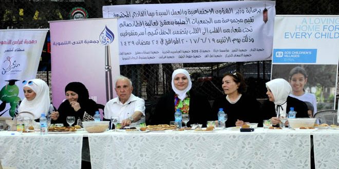 أقامت مجموعة من الجمعيات الأهلية بدمشق فعالية ” إفطار صائم” اليوم تحت شعار “من القلب إلى القلب” وذلك في مدينة الجلاء الرياضية بالمزة.