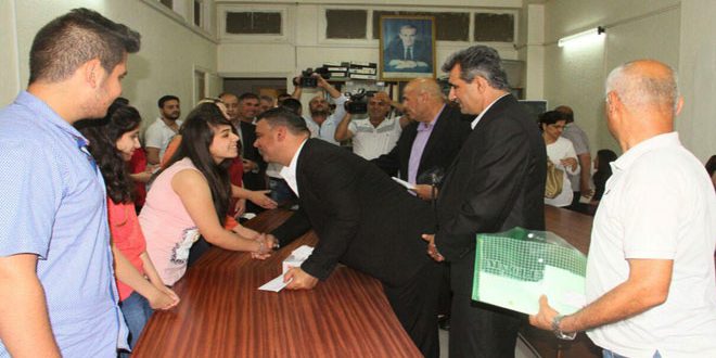 تكريما لجهودهم المبذولة على مدار عام كامل كرمت قيادة فرع حزب البعث العربي الاشتراكي في طرطوس اليوم الطلاب السبعة الذين حصلوا على العلامة التامة في شهادة التعليم الأساسي بالمحافظة.