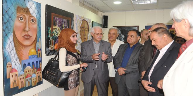وقال رئيس اتحاد الفنانين التشكيليين عبد المعطي أبو زيد في تصريح لـ سانا “المعرض جزء من برنامج اللجنة التحضيرية ليوم القدس العالمي الذي يصادف يوم الجمعة الأخير من شهر رمضان المبارك لتعزيز حضور الفن التشكيلي في القضية الفلسطينية ولدعوة كل الفصائل لتوحيد جهودها وطاقاتها نحو تفعيل المقاومة ضد الاحتلال”، مشيراً إلى مشاركته بعمل جداري يضم ثلاث لوحات تشكل حمامة السلام أحد أهم مكوناتها.