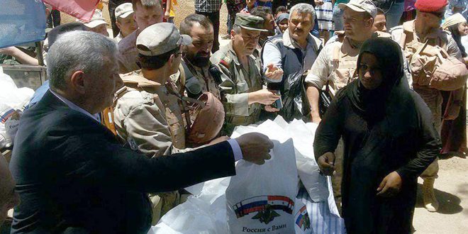 وأشار محافظ السويداء عامر ابراهيم العشي في تصريح له من مركز الإقامة المؤقتة في بلدة رساس إلى أن هذه المساعدات “تعبر عن عمق علاقات الصداقة السورية الروسية والموقف الروسي الداعم للشعب السوري في صموده لمواجهة قوى الإرهاب والحرب العدوانية الظالمة على سورية” معربا عن الشكر والتقدير لروسيا الاتحادية حكومة وجيشاً وشعباً لوقوفها إلى جانب سورية ومساندتها لقضاياها الوطنية في مواجهة الإرهاب.