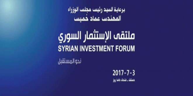 برعاية رئيس مجلس الوزراء المهندس عماد خميس وفي أول فعالية تركز على طرح فرص جاهزة للاستثمار ينعقد في الثالث من تموز المقبل في فندق داماروز بدمشق ملتقى الاستثمار السوري الأول تحت شعار “سورية.. نحو المستقبل” وذلك في إطار سياسة الحكومة الهادفة لتوفير بيئة العمل المناسبة لإقامة وتشغيل المشروعات الاستثمارية ومناقشة آفاق تطويرها وتأمين التسهيلات اللازمة لوضعها موضع التنفيذ.