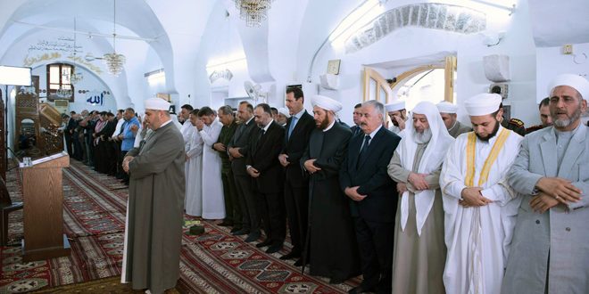 الرئيس الأسد يؤدي صلاة عيد الفطر المبارك في رحاب جامع النوري بحماة