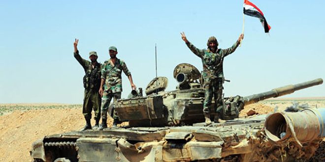 واحكمت وحدات من الجيش العربى السورى بالتعاون مع القوات الحليفة الجمعة الماضي سيطرتها على محطة غاز آرك شمال شرق قرية آرك وعلى 4 نقاط حاكمة شمال شرق القرية بعد القضاء على العديد من إرهابيي تنظيم “داعش” وتدمير أسلحتهم.