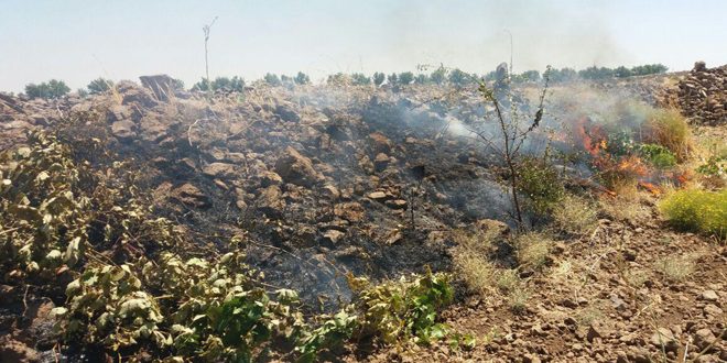 وأفاد مراسل سانا في ريف دمشق بأن المجموعات الإرهابية المنتشرة في مزرعة بيت جن استهدفت ظهر أمس بقذيفة صاروخية حقول المزارعين في قرية حرفا ما أسفر عن استشهاد شخص وإصابة اثنين آخرين بجروح واشتعال الحرائق بعدد من أشجار الزيتون.