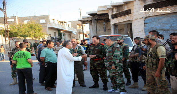 فقد أعادت أمس وحدات من الجيش والقوات المسلحة الأمن والاستقرار إلى بلدات طيبة الإمام ولويبدة وزور أبو زيد وجسر حلفايا بريف حماة الشمالي وكبدت التنظيمات الإرهابية المسلحة خسائر كبيرة بالعديد والعتاد.