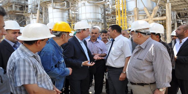 بدوره نوه محافظ حمص طلال البرازي بالجهود الاستثنائية لجميع العاملين في القطاع النفطي ولا سيما عمال المصفاة والاستمرار بالعملية الانتاجية ما ينعكس إيجابا على دفع عجلة الاقتصاد الوطني نحو الأفضل.