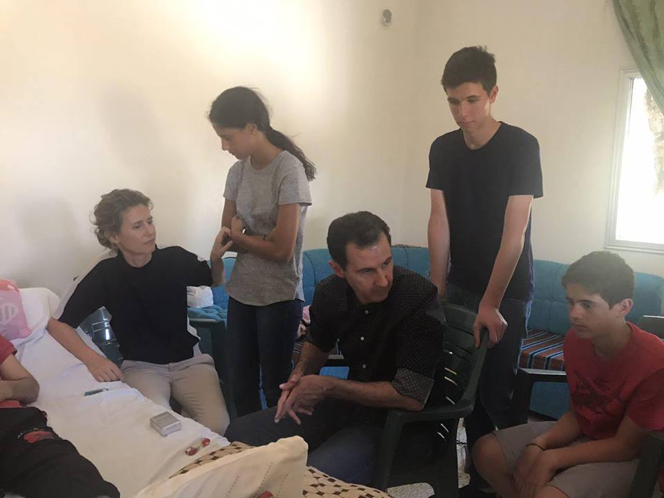 وكان الرئيس الأسد والسيدة عقيلته وأبناؤهما زاروا خلال شهر تموز من العام الماضي عدداً من جرحى الجيش والقوات المسلحة في قراهم بريف حمص.