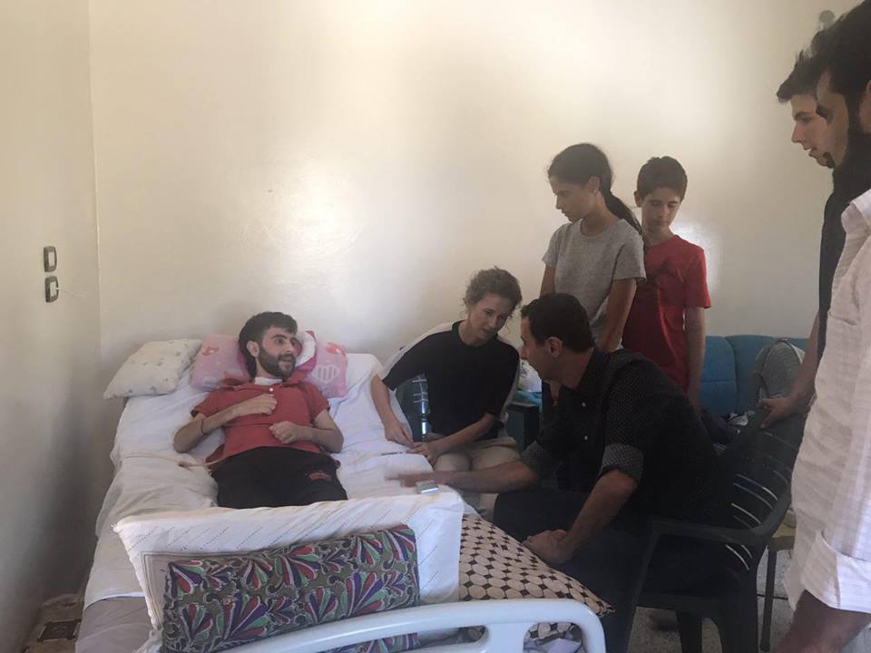 وزار الرئيس الأسد وعائلته الجريح أحمد محمد العلي من قرية متنا في ريف حماة والذي آمن بوطنه وقدم له من دمه وجسده.
