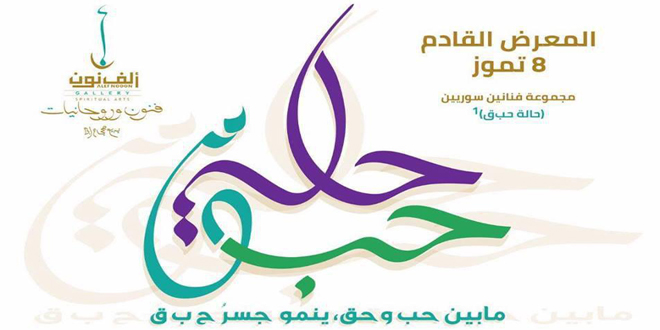 يجتمع 43 فنانا تشكيليا من جميع أنحاء سورية بمعرض (حالة حب ق 1) عند الساعة السادسة من مساء يوم السبت المقبل وذلك في صالة ألف نون للفنون والروحانيات بدمشق.