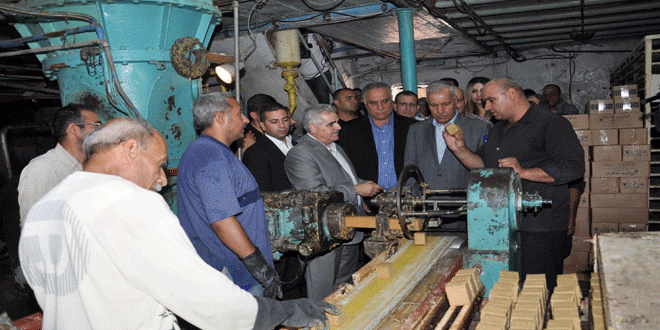 وقدم المهندس سعد الدين العلي مدير المؤسسة العامة للسكر شرحا عن واقع العمل في الشركة ومعاملها موضحا أن معمل السكر “متوقف ريثما يتم تصريف مخزونه من السكر الأبيض” كما ينتج معمل الخميرة نحو 24 طنا يوميا وهي تكفي لسد حاجة اربع محافظات من الخميرة الطرية مع استمرار العملية الانتاجية في معملي الزيت والكحول.