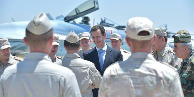 2017-06-27 الرئيس الأسد يتفقد عددا من حاملات الجنود والطائرات الروسية في قاعدة حميميم باللاذقية 2017-06-27mohamad
