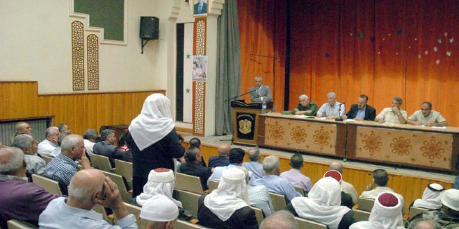 حضر اللقاء قائد شرطة المحافظة اللواء فاروق عمران وعدد من أعضاء قيادة فرع السويداء لحزب البعث والمكتب التنفيذي لمجلس المحافظة وعدد من أعضاء مجلس الشعب عن المحافظة.