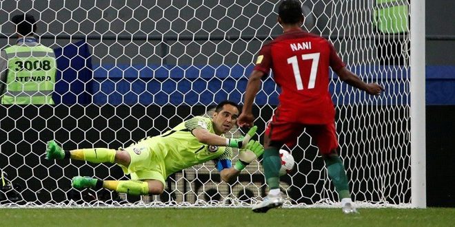 تأهل المنتخب التشيلي إلى المباراة النهائية لكأس القارات، بتغلبه أمس على نظيره البرتغالي بركلات الجزاء، بعد تعادل الفريقين في الوقتين الأصلي والإضافي من دون أهداف.