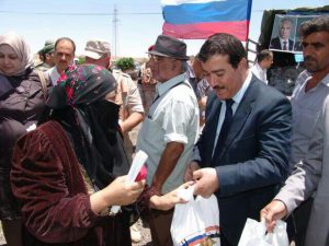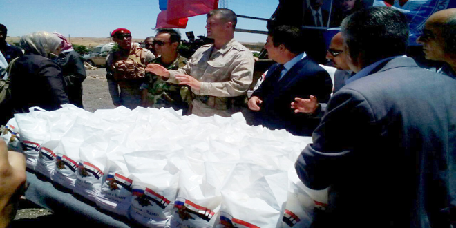 في إطار دعم صمود السوريين في وجه الإرهاب وزع مركز التنسيق الروسي في حميميم اليوم مساعدات غذائية على أسر الشهداء والمهجرين والمحتاجين في بلدتي الشقرانية والمسمية بريف درعا الشمالي وذلك بالتعاون مع محافظة درعا.