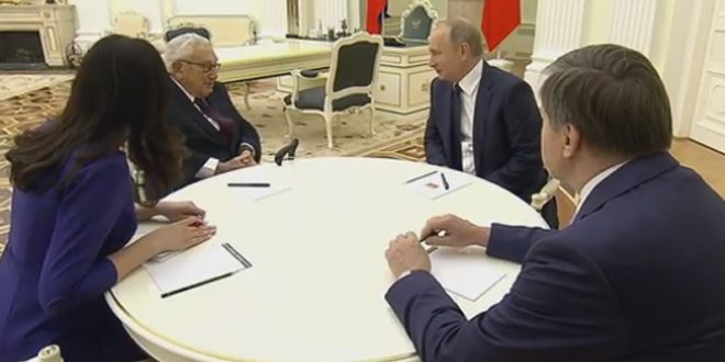 وكان كيسنجر الذي يزور موسكو للمشاركة في مؤتمر “قراءات بريماكوف” قد التقى بالرئيس بوتين مساء أمس.