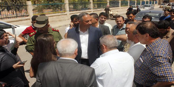 ودعا المحافظ إلى متابعة عملية صيانة وتأهيل طرقات البلدة إضافة إلى عدد من المشاريع التنموية بحيث تساعد في تأمين فرص عمل للمهجرين الموجودين في البلدة ومتابعة موضوع إنتاج رغيف الخبز بالشكل الأمثل وتزويد المخابز بكميات إضافية من الطحين بما يلبى احتياجات المواطنين.