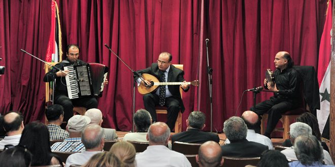 أمير البزق الموسيقي الراحل محمد عبد الكريم والفنان جورج عشي كانا نجمي افتتاح الدورة السادسة من ملتقيات دمشق الثقافية التي تقيمها مديرية ثقافة دمشق في المركز الثقافي العربي في أبو رمانة مساء اليوم.