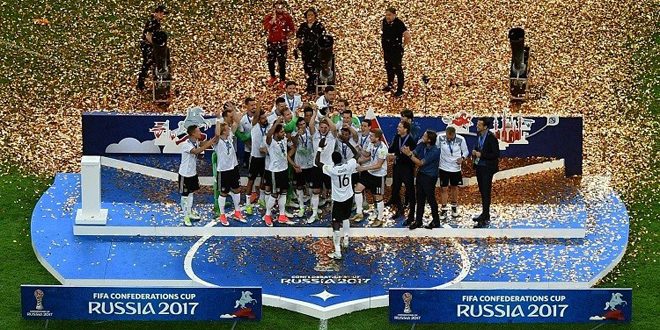 أحرز المنتخب الألماني بطل العالم لقب كأس القارات لكرة القدم أمس بعد فوزه على تشيلي بهدف وحيد في نهائي البطولة التي اقيمت في روسيا.