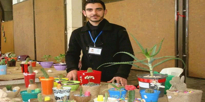 يمتلك المهندس الزراعي “كرم قاسم” رؤية فنية متميزة لتطويع نبات الصبار في أشكال ومنتجات جذابة تقدم كهدايا في المناسبات الاجتماعية المختلفة كانت أساسا لمشروعه الصغير الذي عمل على تنويع منتجاته لتشمل استخدام خشب الصنوبر في أعمال فنية يزينها الخط العربي الجميل.